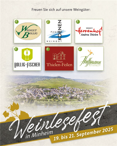 Sie finden unseren Winzerhof in Minheim, einer kleinen Gemeinde in einer romantischen Moselschleife im Herzen der Mittelmosel gelegen.